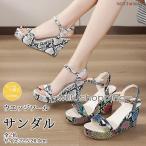サンダル レディース ゥ パイソン柄 ハイヒール ウェッジソールサンダル 美脚 厚底 ストラップ 履きやすい 歩きやすい カジュアル 大人 おしゃれ 夏