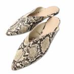 ザラ トラファルック ZARA Trafaluc パイソン柄 Vカット フラット ローヒール ミュール サンダル 37 24.0cm レディース