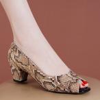 パンプス レディース ローヒール パイソン柄 太ヒール 5cm ヒール オープントゥ パンプス サンダル 結婚式 パーティー 二次会 2次会 お呼ばれ パーティ 美脚