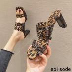 レディース サンダル フレアヒール ヒョウ柄 靴 ハイヒール 大人可愛い サンダル 歩きやすい 痛くない おしゃれ 履きやすい 美脚 シンプル