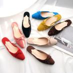 サンダル バックストラップ ポインテッドトゥ りぼん フラット レディース ぺたんこ 黒 豹 ヒョウ 柄 ブラック レオパード レッド イエロー 靴 婦人靴 韓国