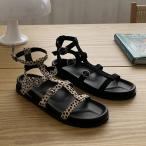 サンダル コンフォートサンダル アンクルストラップ フラット レディース ぺたんこ ペタンコ 黒 ブラック レオパード ヒョウ 豹 柄 歩きやすい 靴 婦人靴 韓国