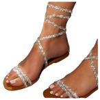【並行輸入品】女性用サンダル、ドレッシーサマー、レディースラインストーンフラットサンダル、クリスタルビーチサンダル、宝石付きビーチサンダル、ボー