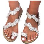 【並行輸入品】ZBYY レディース サンダル フラット フラワー フラット ビーチサンダル ボーホーサンダル 調節可能なバックル付き グラディエ