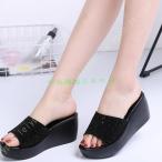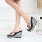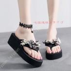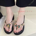 ビーチサンダル レディース サンダル 滑り止め 軽量 歩きやすい ビーサン ウェッジサンダル 厚底 ミュール サボ ラインストーン スパンコール 美脚 細見え
