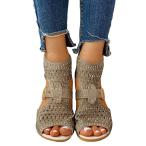 【並行輸入品】HNGHOU レディース サマービーチサンダルシューズ カジュアル オープントゥ アンクルクリスタルグラディエーター ウェッジサン