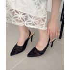 サンダル 総レース ポインテッド ヒールパンプス レディース