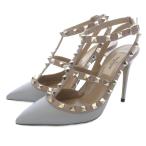 ヴァレンティノ ガラヴァーニ VALENTINO GARAVANI ロックスタッズ サンダル ピンヒール レザー ポインテッドトゥ 36 グレー /SR レディース