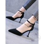 サンダル レディース パンプス ダブルストラップ ハイヒール ピンヒール アンクルストラップ ポインテッドトゥ シューズ 夏向き おしゃれ ブラック