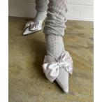 サンダル サテンリボンポインテッドトゥミュールサンダル レディース