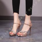 サンダル ストラップ付き ハイヒール ピンヒール 疲れない サンダル レディース ヒール 長時間 オープントゥ ラインストーン ストラップ 歩きやすい