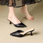 ポインテッドトゥ ミュール レディース サンダル パンプス ハイヒール 7.5cmヒール ピンヒール レザー スリッパ 無地 歩きやすい 履きやすい シンプル