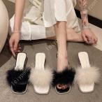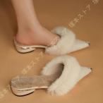 ファー付き サンダル ミュール シューズ レディース 春夏 サボサンダル ポインテッドトゥ ローヒール サンダル 美脚 もこもこ 履きやすい 痛くない
