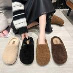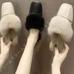 レディース ミュール ファーサンダル ファー付き かわいい 歩きやすい 美脚 ファー ローヒール ぺたんこ 裏ボア ミュール ふわふわ おしゃれ 楽チン 軽量 女性