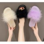 ファースリッパ ふわふわ サンダル ファー付き レディース ファッション フラット 軽い 柔らかい ふわふわ 歩きやすい 春 秋 冬 暖かい サンダル おしゃれ