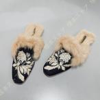 ファーサンダル ぺたんこ レディース ファー付き バブーシュ ファー 刺繍
