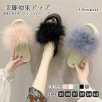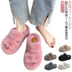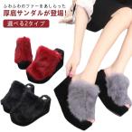 ファーサンダル レディース ルームシューズ ファー付き 厚底 サンダル スリッパ もこもこ 美脚 ふわふわ ミュール ヒール6cm あったか フラット