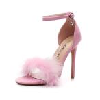【並行輸入品】JOEupin レディース ふわふわ マラブー フェザー ハイヒール ストラップヒールサンダル ファー付き, ピンク, 11 JO