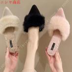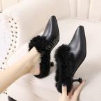 レディース ポインテッドトゥ ミュール ファーサンダル バンプス ファースリッパ ファーミュール ハイヒール6cm ピンヒール ファー付き バブーシュ ふわふわ 防寒 保温 オフィス 外履き キレイめ 痛くない 歩きやすい 美脚 通勤OL 秋 冬 おしゃれ
