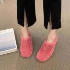 レディース ミュール ファーサンダル ファー付き かわいい 歩きやすい 美脚 ファー ローヒール ぺたんこ 裏ボア ミュール ふわふわ おしゃれ 楽チン 軽量 女性