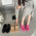 ファー付き ミュール サンダル レディース スリッパ つっかけ 丸ヒール かかとなし チャンキーヒール 5cm バブーシュ 歩きやすい 滑りにくい もこもこ
