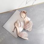 サンダル ピンヒール ファー付き 夏 歩きやすい オープントゥ 大きいサイズ 疲れにくい レディース アンクルストラップ クッション 8.5cm ヒール スエード
