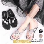 サンダル フラワー×パールモチーフ厚底ビーチサンダル レディース
