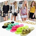 サンダル ヒールフラワーモチーフビーチサンダル レディース