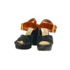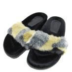 ザラウーマン ZARA WOMAN サンダル フェイクファー ベルベット 総柄 マルチカラー 35 ブラック 黒 /YM1 レディース