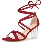 Allegra K レースアップ サンダル 編み上げ ベルベット クリア ブロックヒール レディース レッド 25.0cm