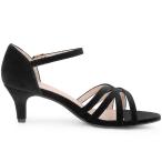 Perphy バックル アンクル ストラップ ベルベット キトンヒール サンダル レディース 黒 23.0cm