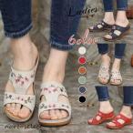 サンダル スリッパ レディース オープントゥ シューズ ウェッジヒール 刺繍 美脚 滑り止め 夏靴 コンフォートサンダル カジュアル 新作 大きいサイズ