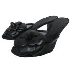 シャネル CHANEL カメリア サンダル ミュール ラムスキン ココマーク レザー×メッシュ 35.5C 黒 ブラック ■MNK3 レディース
