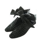 ジルサンダー JIL SANDER サンダル メッシュアッパー リボン ローヒール 36 22.5cm 黒 /MI ■OS レディース