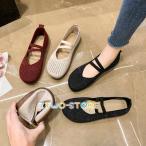 ストラップパンプス レディース メッシュパンプス 靴 ぺたんこ バブーシュタイプ フラットパンプス オールシーズン 編みサンダル 歩きやすい 美脚靴 滑り止め