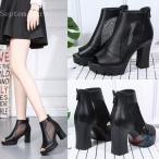 サマーブーツレディースブーツサンダルメッシュピークルシースルーオープントゥ快適春夏秋6/9cmチャンキーヒール美脚見えきれいめファッション旅行にも