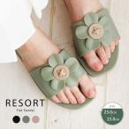 ミュール サンダル レディース つっかけ ぺたんこ リゾートサンダル 花 ビーチサンダル 海 プール 旅行 リゾート 黒 ブラック ベージュ カーキ