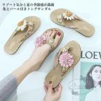 トング レディース サンダル ぺったんこ トングサンダル 花柄 スリッパ リゾート サマーサンダル パール付き ビーサン お洒落 ビーチサンダル