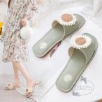 スリッパ レディース サンダル ルームシューズ アウトドア フラットソール リゾート ビーチ ひまわり シンプル 夏用 涼しい