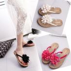 ビーチサンダル レディース 花飾り おしゃれ フラットソール サマーサンダル ビーサン スリッパ リゾート ハワイ 夏 海 シューズ