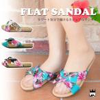レディース 3217 リゾートサンダル リゾート サンダル ハイビスカス フラット フラットサンダル リボン ボタニカル柄 バンダナ カジュアル 夏 浴衣