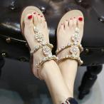 サンダルレディースサンダルキラキラストラップリゾートサンダルトングラインストーン付きビーチサンダルフラットシューズ