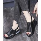 サンダル PUレザー太アッパーウェッジソールサンダル レディース