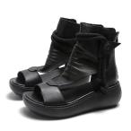 【並行輸入品】QSCQ レディース サマー ハイトップ グラディエーター サンダル レザー つま皮 ピープ トウ ノンスリップ バックジッパー