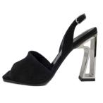 【名東】【HERMES】エルメス クリスタル105 ヒールサンダル ブラック 黒 スエード レザー シルバー金具 サイズ37 1/2 レディース【未使用】【中古】