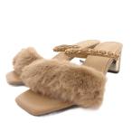 ランダ RANDA サンダル レザー フェイクファー チャンキーヒール M ベージュ /FF ■GY18 レディース
