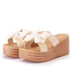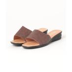 Feminine Cafe/フェミニンカフェ■LL(24.5cm〜25.0cm程度)■レディース レザー クロスストラップ ウェッジヒール サンダル 19733 1602■OAK/オーク■ソールのゴールドラインやジュート素材がワンポイント☆夏らしいデザイン◎【中古】