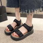 レザー調 ギャザー ストラップ 厚底 スポーツ サンダル シューズ ラウンドトゥ レディース 夏 サマー 無地 単色 歩きやすい コンフォート フラット カジュアル スポーティー トレンド おしゃれ おでかけ デイリー デート リゾート レジャー 旅行