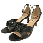 ねじりリボンミュールサンダル レディース オープントゥ サンダル スクエア ピンヒール レディライク レザー調 軽やか 抜け感 つっかけ トレンド シンプル ミニマル カジュアル エレガント ベーシック ブラック アイボリー グレージュ
