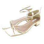 シアー フリル パール ストラップ ヒール サンダル シューズ スクエアトゥ レディース 女性 夏 サマー レザー調 アンクルストラップ チャンキーヒール 太ヒール 歩きやすい 履きやすい おしゃれ かわいい フェミニン ガーリー きれいめ 大人っぽい